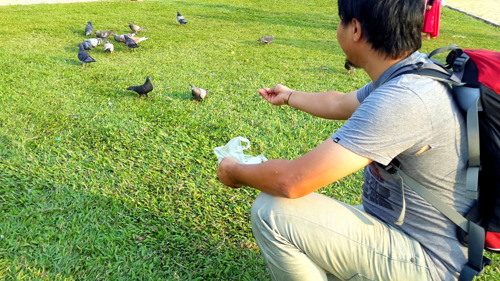 Beli makanan dia. 6000 riyel (RM5.55) dapat 3 paket. Bagi makan, burung dah kumpul banyak kita kejar diaaaa.. hehehe..